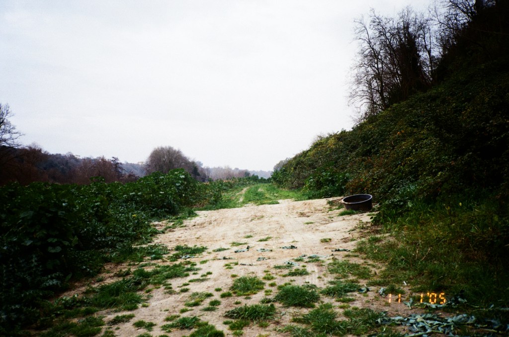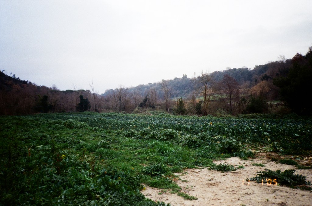 Relieved in my solitude and unsure what to do with myself, I stood still. The recent drizzle dampened my boots, providing ample adhesion for the sand to cake underneath. I didn’t mind– we had been through worse. I found ant hills at my feet, and squatted down to see how deep I could still delineate their form. I stood back up and returned to the terminus, gazing at the lines that disappeared into their bends. I closed my eyes. I heard insects buzz and bird calls, the thisling of trees and bushes, and the faint hum of conversation at the top of the hill, back at the villa. The scent of petrichor and mud swirling in and out of the breeze carried some unidentifiable fly species above my head.